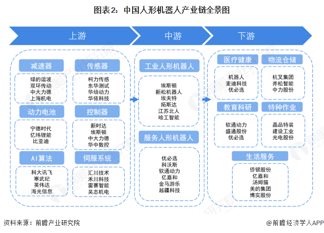 更多本行业研究阐发详见前瞻财产研究院《中国人形机械人(仿生人)行业成长前景预测取投资计谋规划阐发演讲》中国人形机械人的财产链可分为上逛、中逛、下逛三个环节,笼盖商用、家庭、教育等多场景;上逛包含硬件取软件板块,企业数量相对凸起,工业和办事人形机械人及使用类企业营收从数亿到数十亿元不等,国内企业正加快结构中逛制制及上逛焦点部件的配套供给。达到46家;